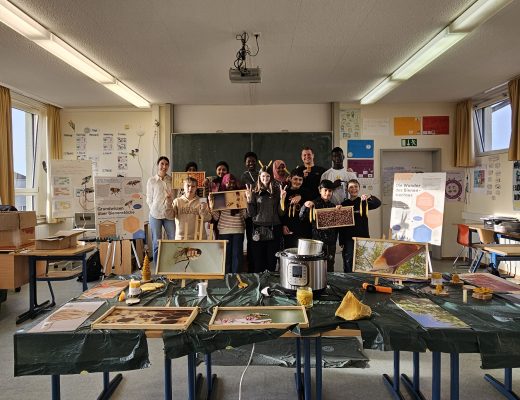 Ein Imker besuchte uns in der Intensivklasse, um uns über das Leben der Bienen zu erzählen, wie sie Honig und Wachs herstellen und sechseckige Waben bauen. Wir sahen Bilder von den Entwicklungsstadien der Biene und lernten, wie Pollen an ihrem Bauch haften bleibt, wegen der kleinen Härchen. Am Ende des Workshops schmolzen wir Bienenwachs und stellten daraus schöne Kerzen her. Außerdem schenkte Herr Jäger jedem von uns ein kleines Glas mit natürlichem Honig. Es war ein sehr unterhaltsamer und lehrreicher Tag. Aya…